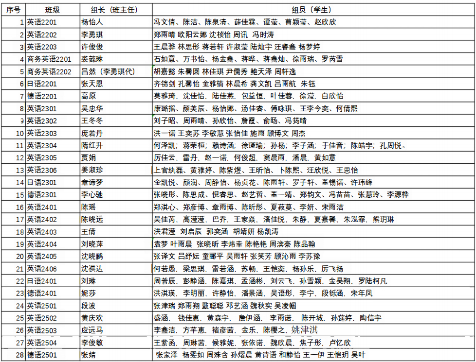根据《学生工作部关于做好2025-2026学年学生资助对象认定工作的通知》相关要求,现将2025—2026学年外国语学院各班级奖励资助评议小组人员名单公示如下:
