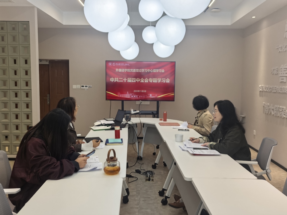 为学习宣传贯彻党的二十届四中全会精神,11月3日,外国语学院党委理论学习中心组举行专题学习会学习党的二十届四中全会精神。